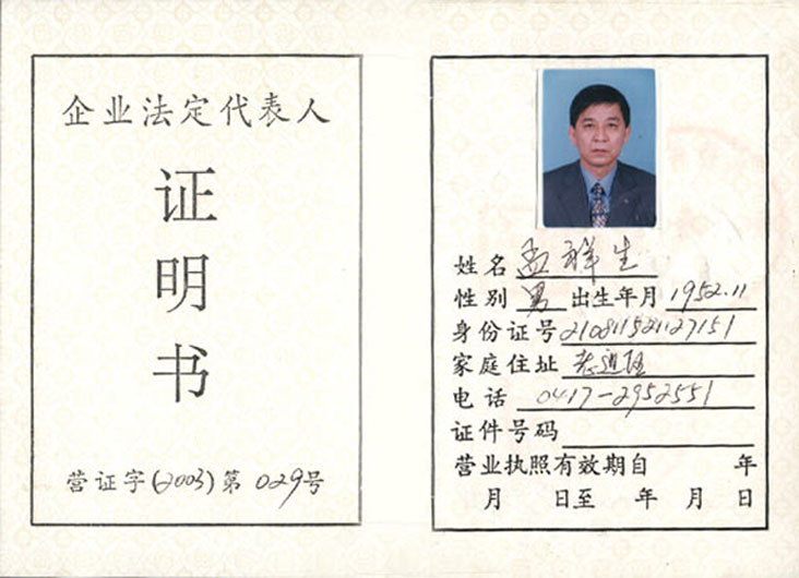 企業(yè)法定代表人證明書